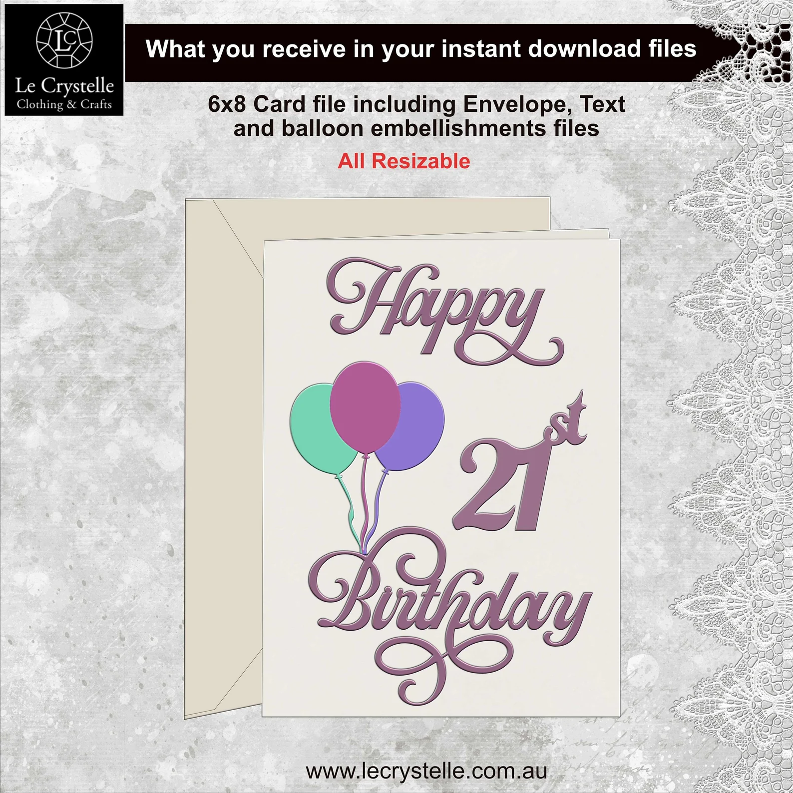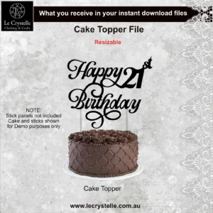 Cut file for 21st Birthday Cake Topper PLUS matching Card cut files – Card size is 6×8 and topper is Approx. 25cm w x 20cm h