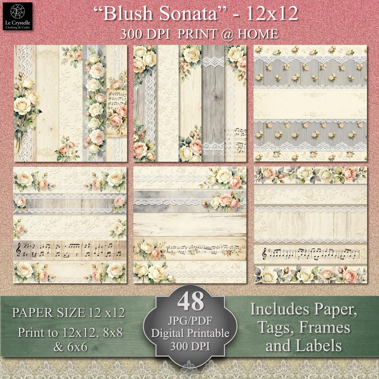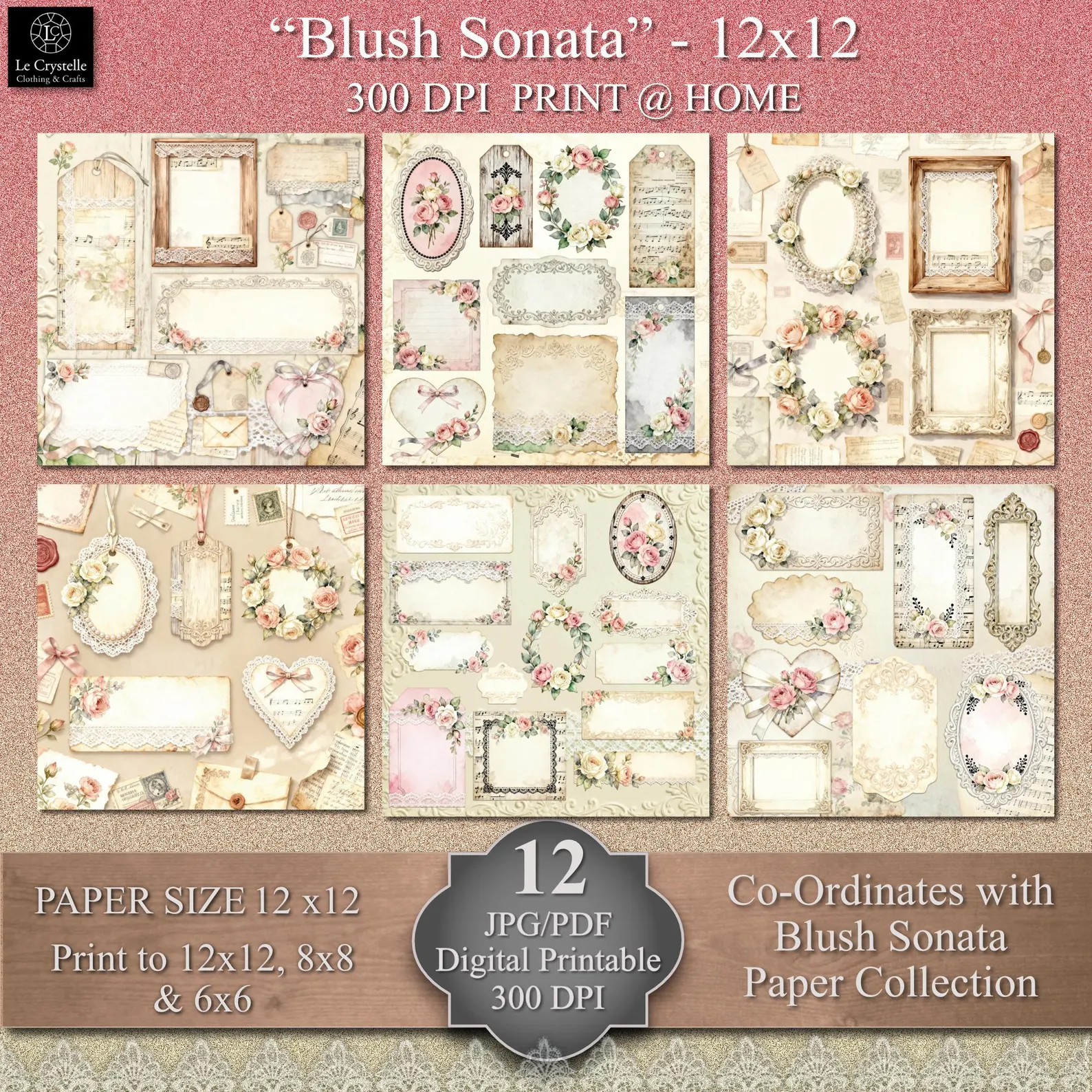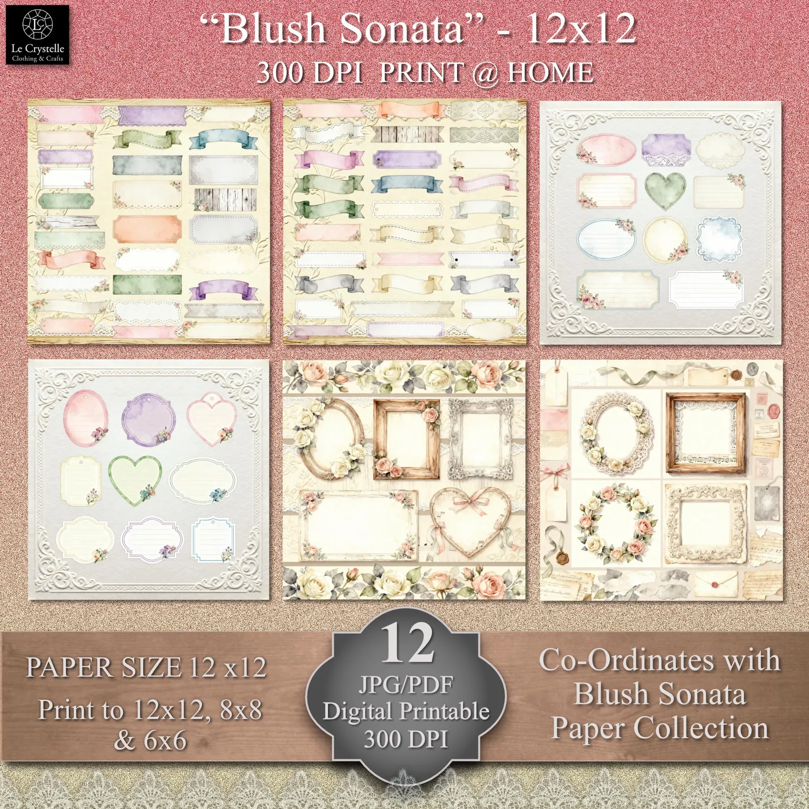 Elevate your crafting projects with this versatile collection of 48 coordinating Digital 12×12 designs, plus Blush Sonata Extras. These 12×12 papers can be printed to 8×8 and 6×6 size. You need to know how to adjust your printer settings for the different size print outs.