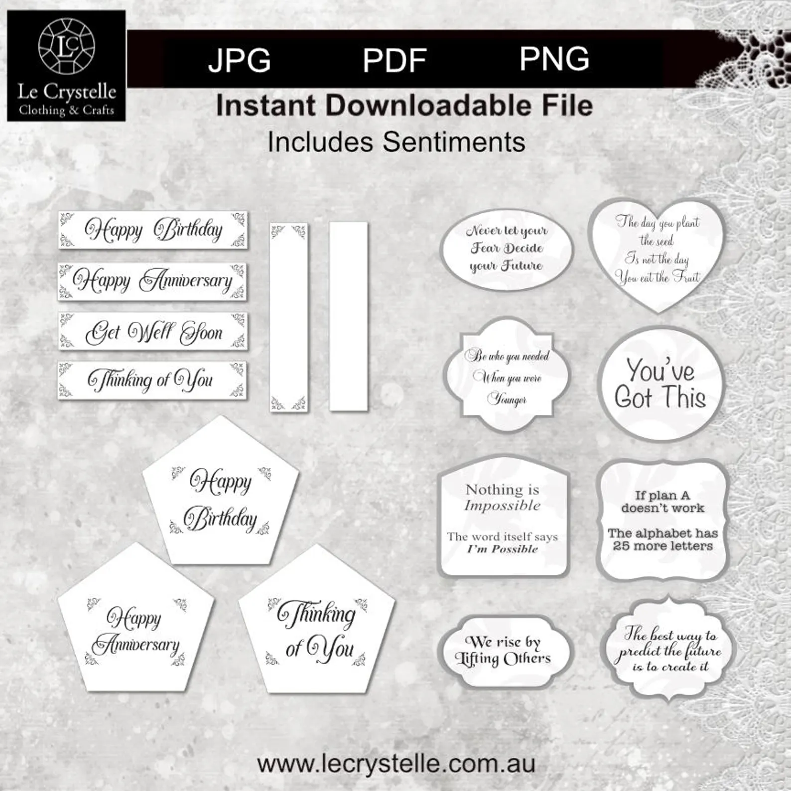 Plus PDF, PNG and JPG Files for co-ordinating Sentiments.