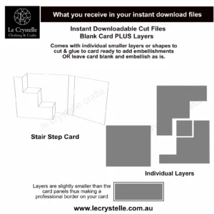 You can then continue to embellish your card with any theme you wish. The Card shape and card layers only in your file. (NO extra EMBELLISHMENTS seen in the images are given in your purchase, ie flowers, leaves etc..the decorated card is for profiling/display purposes only to show you what can be done with your cut card)
