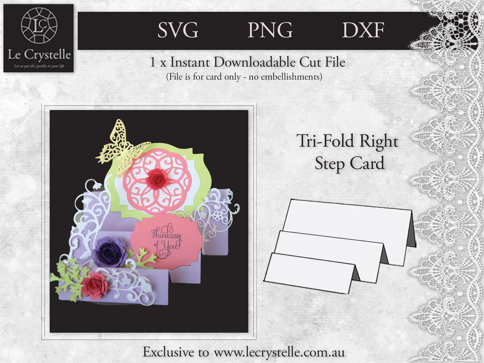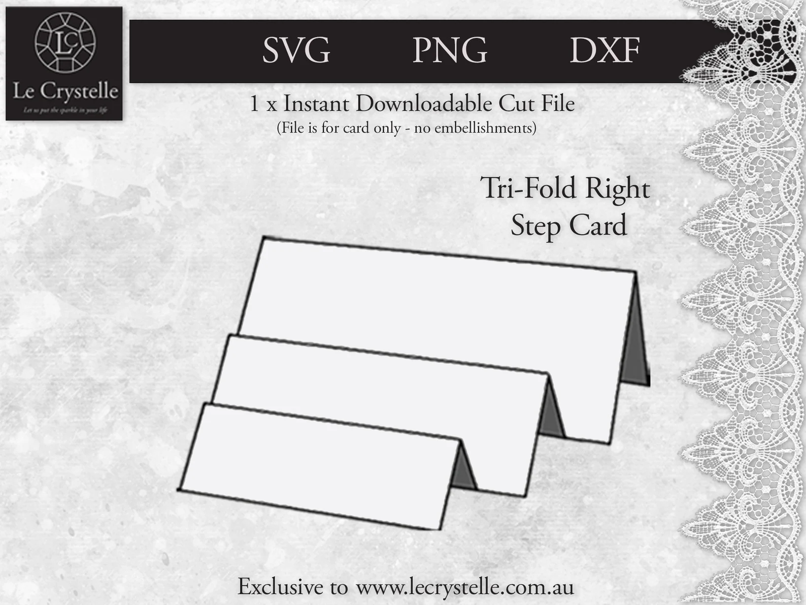 Cut file for Tri-Fold Right Step card – Folded card size is 14.5cm w x 6.5cm h