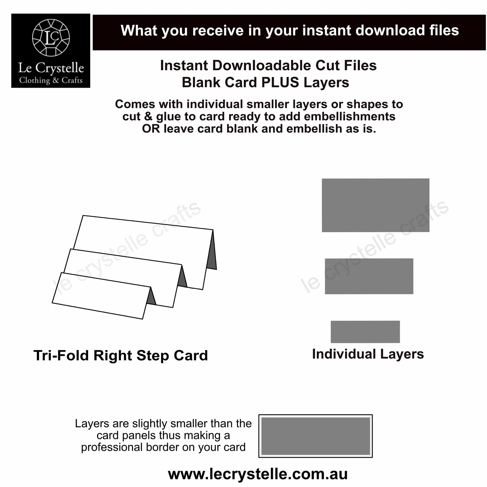 Your card cut file is not only for the card itself but you also receive a file that contains the same shape layers that you need to embellish the top of your card leaving a small border showing around the edges.
