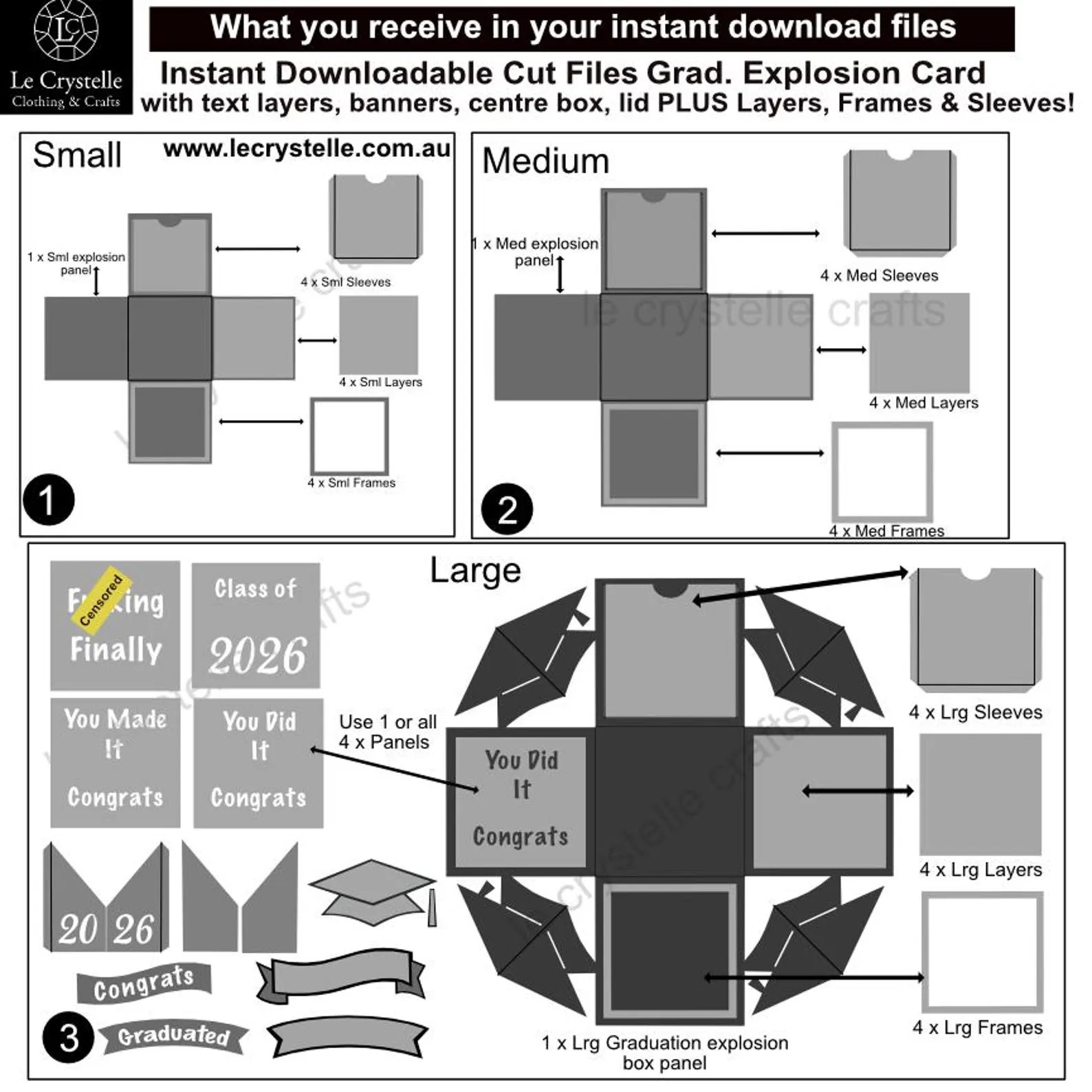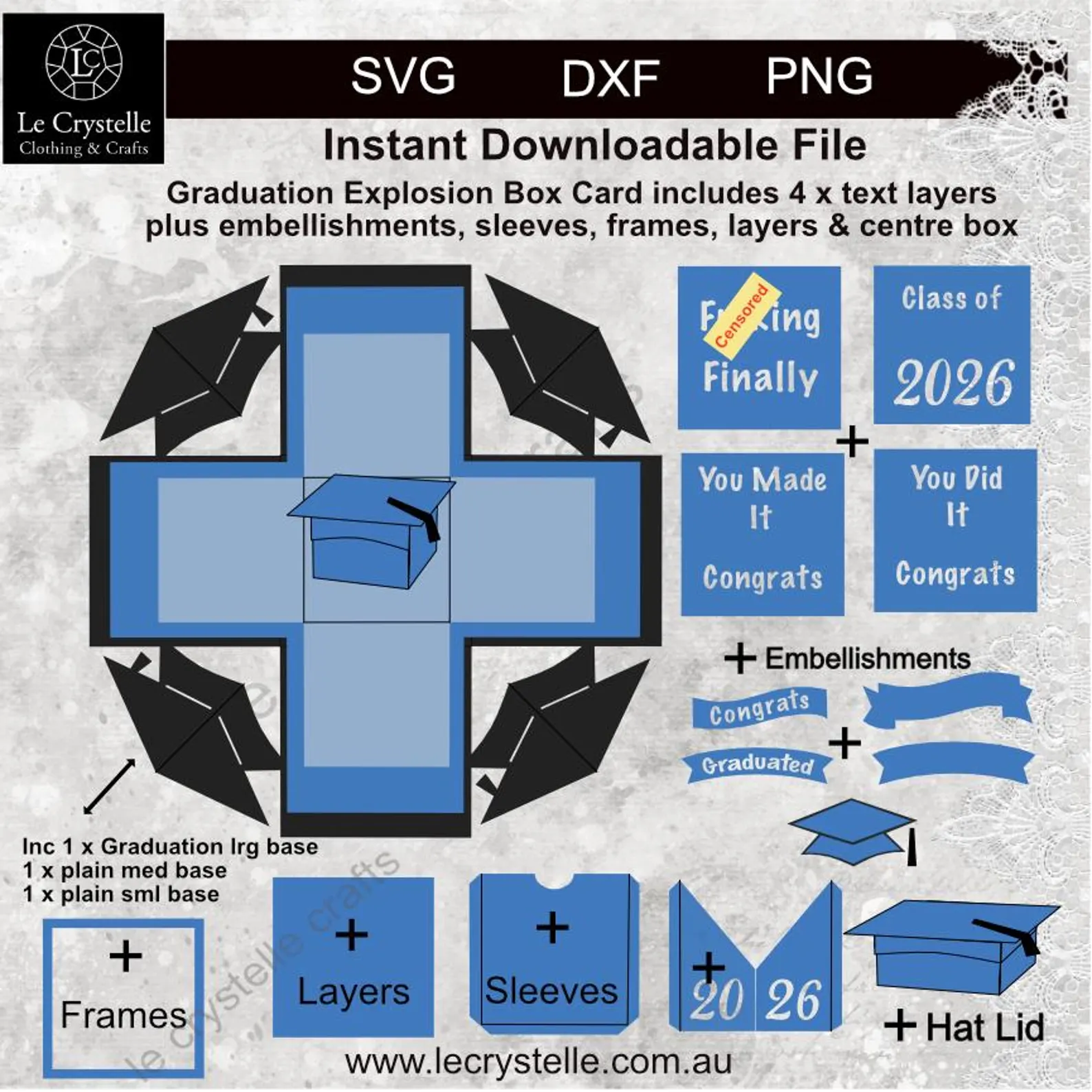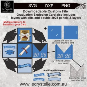 Your card cut file is not only for the Graduation explosion box card base and lid but you also receive a file that contains