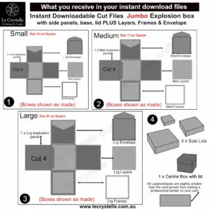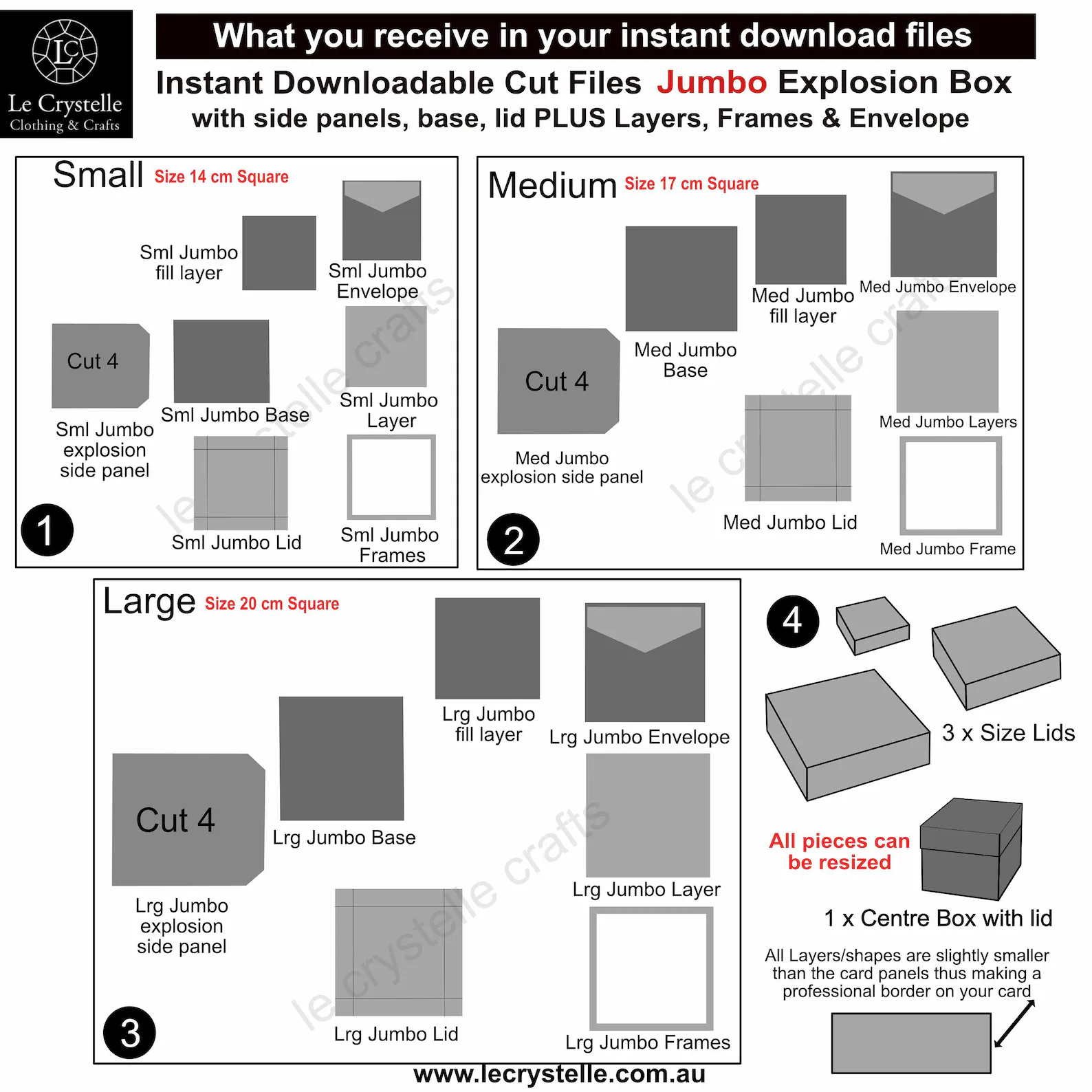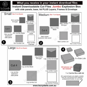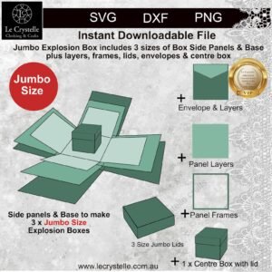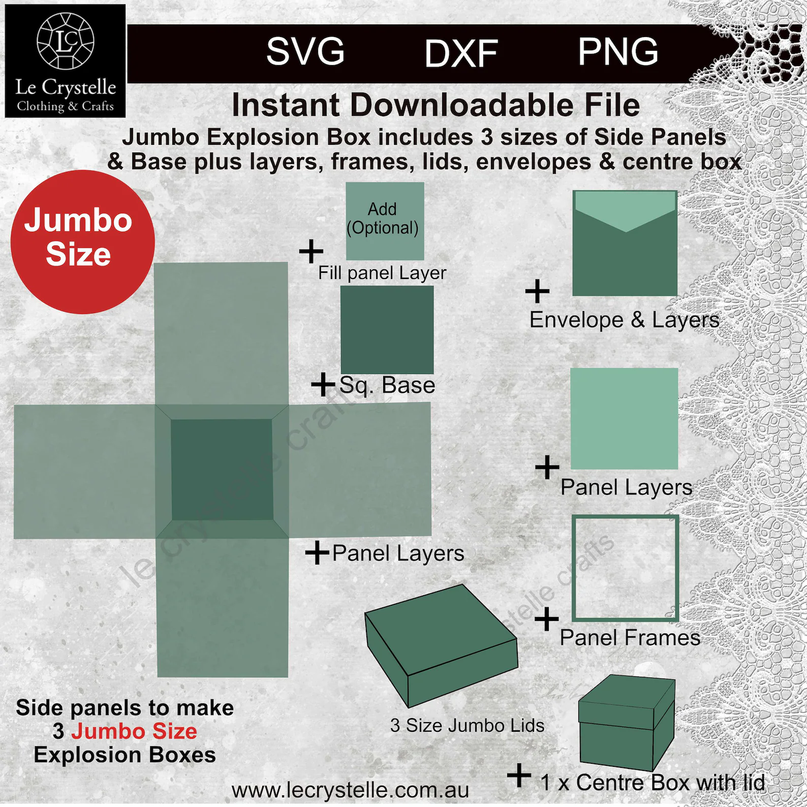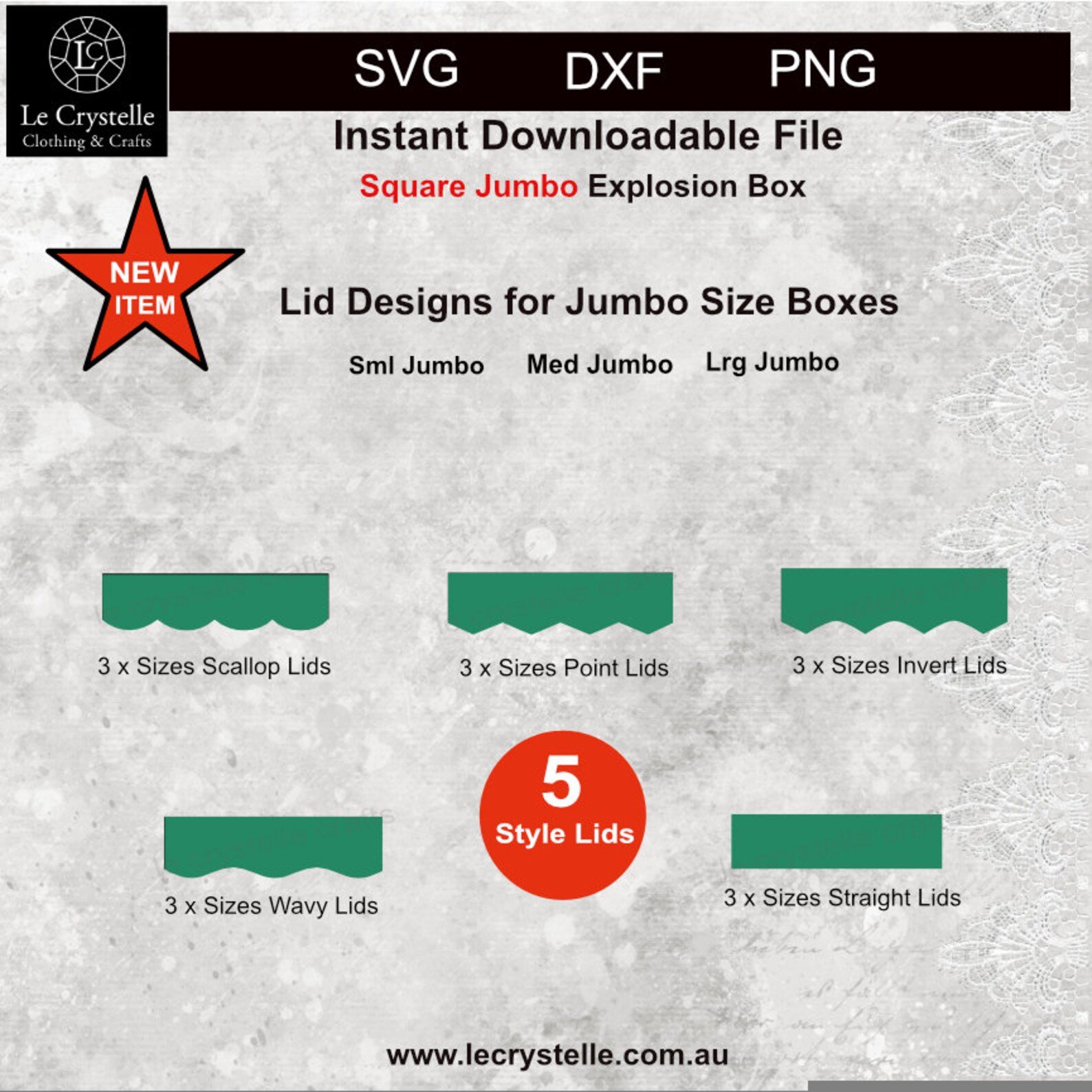 Explosion Box Jumbo Square 3 sizes plus 5 lids SVG