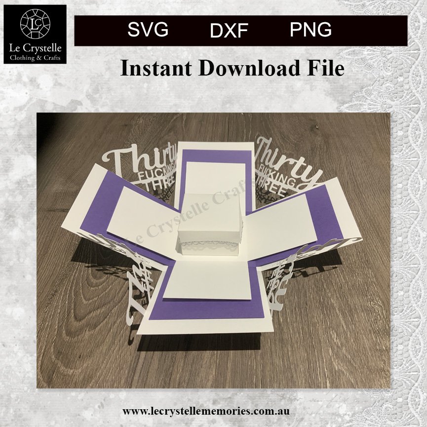 Cut file for Thirty F Three Explosion Box card – Assembled size 9.5 cm x 9.5 cm x 9.5 cm