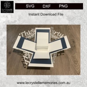 Cut file for Explosion Box Thirty F Years SVG – Assembled size 9.5 cm x 9.5 cm x 9.5 cm