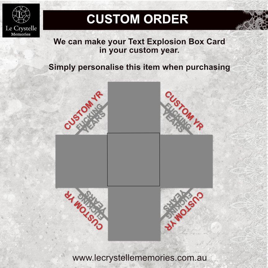 Your card cut file is not only for the 3 x box card sizes (1 x lrg 30 base, 1 x med plain square box, 1 x sml plain square box) with lrg lid and a small center box with lid and lace but you also receive files that contain square layers, decorative layers, frames, pockets and various shapes sentiments that are plain white and a second lot with themed quotes all in three sizes of small med and lrg. But wait there is more!…we also have included a Bonus plain standard lrg expl box that you can add with the med and small boxes to give you a standard square explosion box card. That is two styles for the price of one…There is so much more that our competition claim as extras that are given to you in our files. You won’t find better value anywhere.