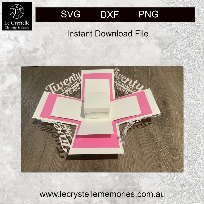 Cut file for Explosion Box Twenty F Years SVG – Assembled size 9.5 cm x 9.5 cm x 9.5 cm